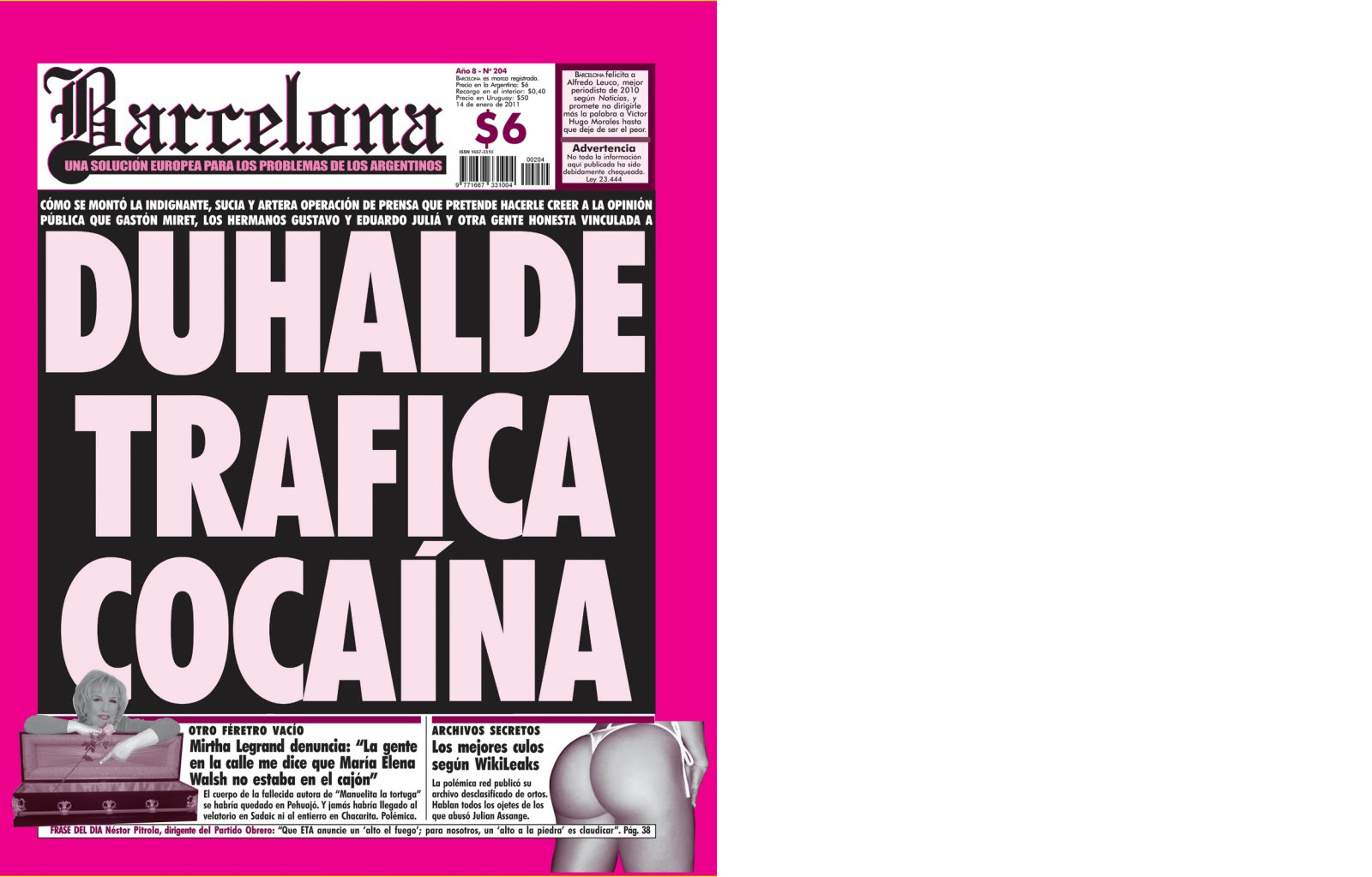 Seis informes delinean las coordenadas políticas de una transición a la baja: el ataque a la moneda, un leviatán armado hasta los dientes, los chaskibunes de la ley de medios, la sobremesa de los partidos políticos, turbulencias en el cielo de los derechos humanos y la alterglobalización del peronismo vaticano.