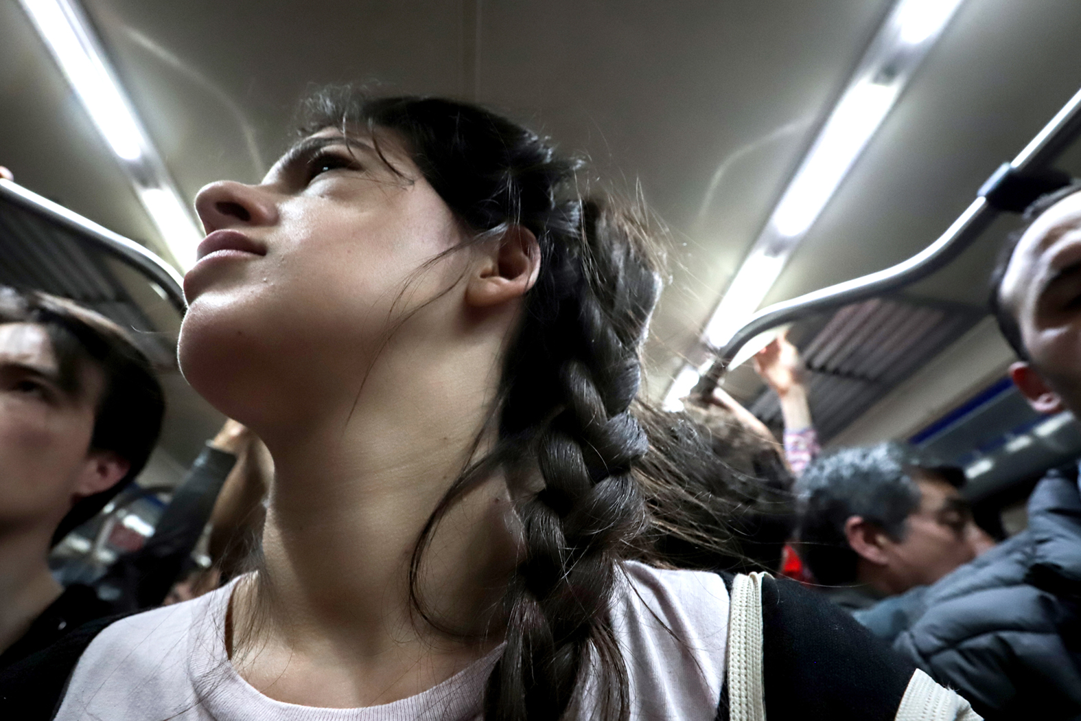 una mujer despeinada entre indios insomnes