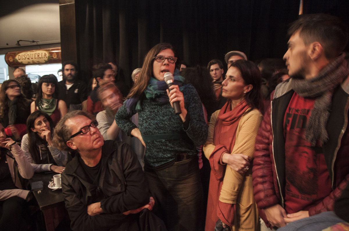 El público, heterogéneo e intenso, siguió la primera ronda de exposiciones con atención y replicaba las polémicas entre murmullos y corrillos. Cuatro personas intervinieron para preguntar, o bien para arengar a los presentes. Magdalena Roggi, del Movimiento Popular La Dignidad, introdujo el contexto latinoamericano y recordó el desafío de Marielle Franco a la democracia realmente existente: ¿cómo evitar la reacción fascista de los poderes? Nicolás Rodríguez Saa, de Unidad Ciudadana, llamó a votar por Cristina Kirchner. Fernando Rosso, periodista y militate trotskista, cuestionó la idea de que es necesario medir y regular los niveles de lucha por temor a la crisis, porque lo que genera inestabilidad no es la protesta social sino los capitales que especulan y se fugan. Diego Abadi, de la juventud de La Bancaria, interrogó sobre los proyectos de reforma laboral impulsados por el Ejecutivo y exigidos por el FMI: ¿y cuál sería la alternativa a ese modelo de relaciones laborales que el gobierno busca imponer? Un señor desde el fondo del salón con un cartel pintado a mano que decía “Macri pará la mano” tomó la palabra a grito pelado y sin micrófono para explicar por qué era necesario detener el intento de ajuste del gobierno ahora, y no esperar al 2019. Entonces la voz volvió emitirse desde el escenario y cada uno de los expositores brindó su veredicto de cierre.