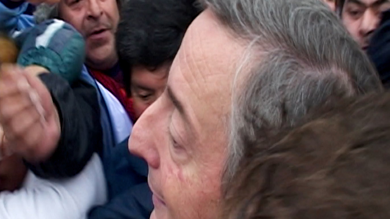 Volvamos al video. Kirchner en el escenario parece un caballo en azotea. No se entendía (y quizás no entendía él del todo) qué quería o qué podía hacer. No se entendía del todo qué pasaba ni hasta dónde podía llegar. La presidencia también le permitió terminar de conocer el país, como a todos los presidentes. La pobreza del sur no era entre gente apiñada. En ese tiempo que era la democracia después de la democracia, ¿cuál era la canción, la “una que sepamos todos” que quedaba en pie con el ahorrista estafado y el trabajador desocupado? El video lleva el aura de cuando está todo por hacerse, por decirse, las vísperas, y nadie muere en las vísperas. Pero en la primera fila se cuelan los que no tienen rosca, las que le llevan al presidente, como al Santo, su pedido para la niña inválida, la pensión para el abuelo roto que no tiene arreglo, las ofrendas del país arrasado, la larga marcha de paz, pan y trabajo. No le pedían una selfie, le pedían una solución. El aire del video es más crudo y despejado. A la intemperie de siempre.