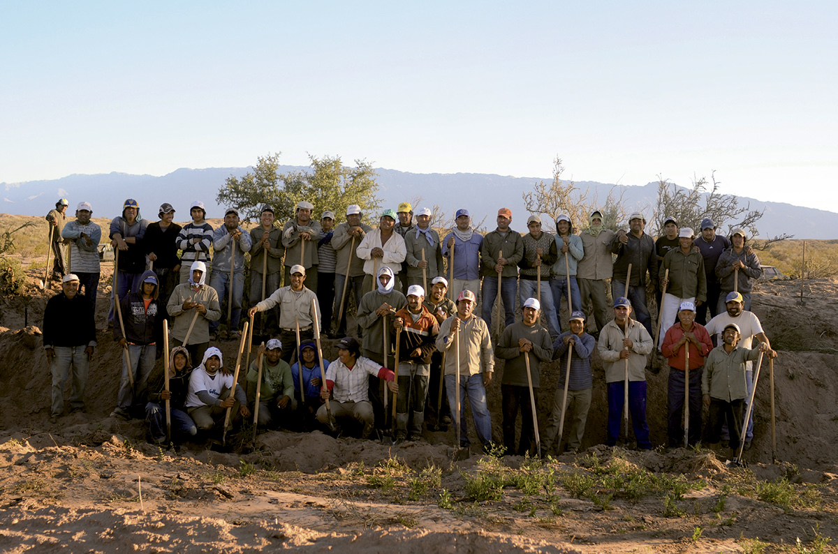 Son cien hombres que buscan el mejor tramo del río para conseguir riego por cuatro meses. El duelo con el agua salvaje, ocurre bajo un sol implacable que los quema y los agobia, pero nadie quiere dar tregua porque aquí no hay tiempo que perder. Además de ser minifundista, la mayoría trabaja como peón de campo y pone su espalda para cosechar aceitunas en Aimogasta, la principal ciudad productora y exportadora de La Rioja, ubicada 20 kilómetros al sur de Bañado.