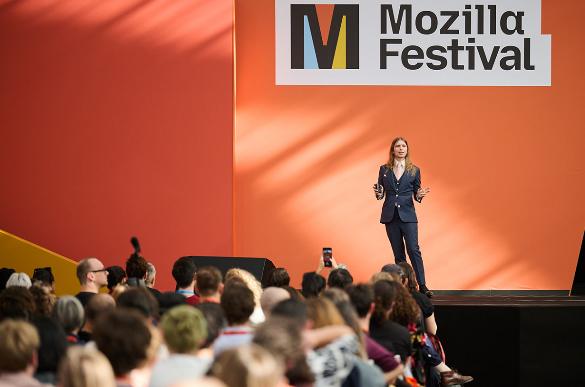 En el antiguo recinto del Poble Espanyol en Barcelona tiene lugar el Mozilla Festival, un evento que desde hace 15 años propone volver a una “internet de comunidad” para llegar a un futuro digital más abierto, basado en derechos fundamentales. El escenario principal parece un invernadero: no tiene paredes y la luz del sol le entra desde cualquier ángulo. Hacktivistas de todo el mundo la esperan. Finalmente sale a escena. Su look preciso contrasta con el fondo naranja. Es, para los que estamos allí, una leyenda viva.