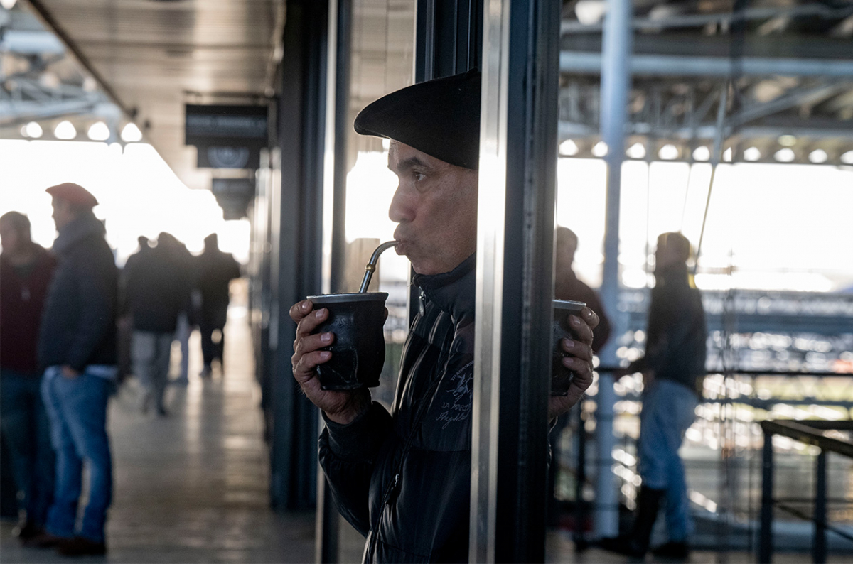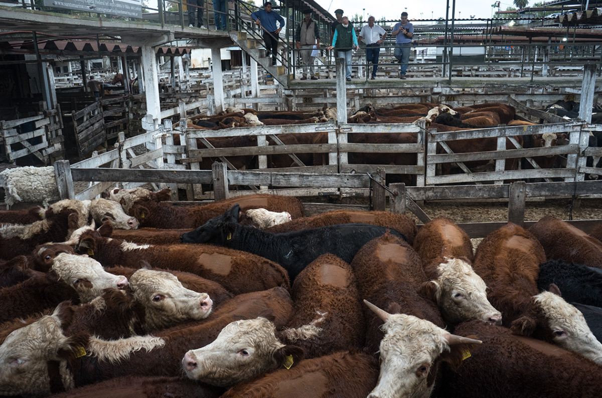 Poco antes de las ocho de la mañana, dentro del predio de 33 hectáreas se escucha la misma campana que desde hace más de cien años anuncia el comienzo del remate de alguna de las consignatarias. Las vacas ingresaron ayer por la tarde-noche y esperan apretadas abajo, en corrales, que se complete el ritual de venta. Arriba, sobre la pasarela caminan pegaditos uno al lado del otro los compradores. Dan un paso tras otro, todos juntos como en una coreografía, siguiendo al consignatario que, a bordo de un carrito de golf embarrado ofrece cada lote, como le dicen a los grupos de vacas en venta. El rematador interpreta cabeceos y señas de ofertantes que los principiantes no vemos. Hay quienes no están involucrados en este remate y caminan por las pasarelas hablando por teléfono, prometiendo otros negocios o anotándose para el que viene. Abunda la camperita de pluma con boina o el sombrerito campero. Varones, vacas y celulares, ganaderísima trinidad.