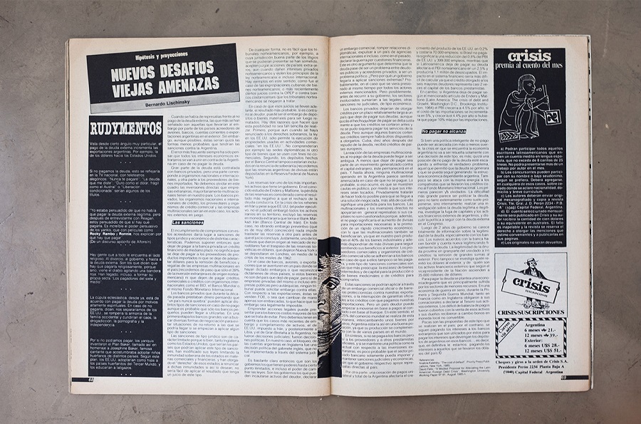En 1986, Crisis se metía de lleno con la encrucijada de la deuda externa y publicaba un informe preparado por quien hoy es el representante argentino ante el FMI, junto a Sergio Chodos. El economista ensayaba alternativas ante la posibilidad de que el gobierno de Alfonsín rompiera las negociaciones y se propusiera un camino distinto. Las coincidencias entre aquella situación y la actual son notables, y una pregunta retumba: ¿por qué nunca probamos algo diferente?