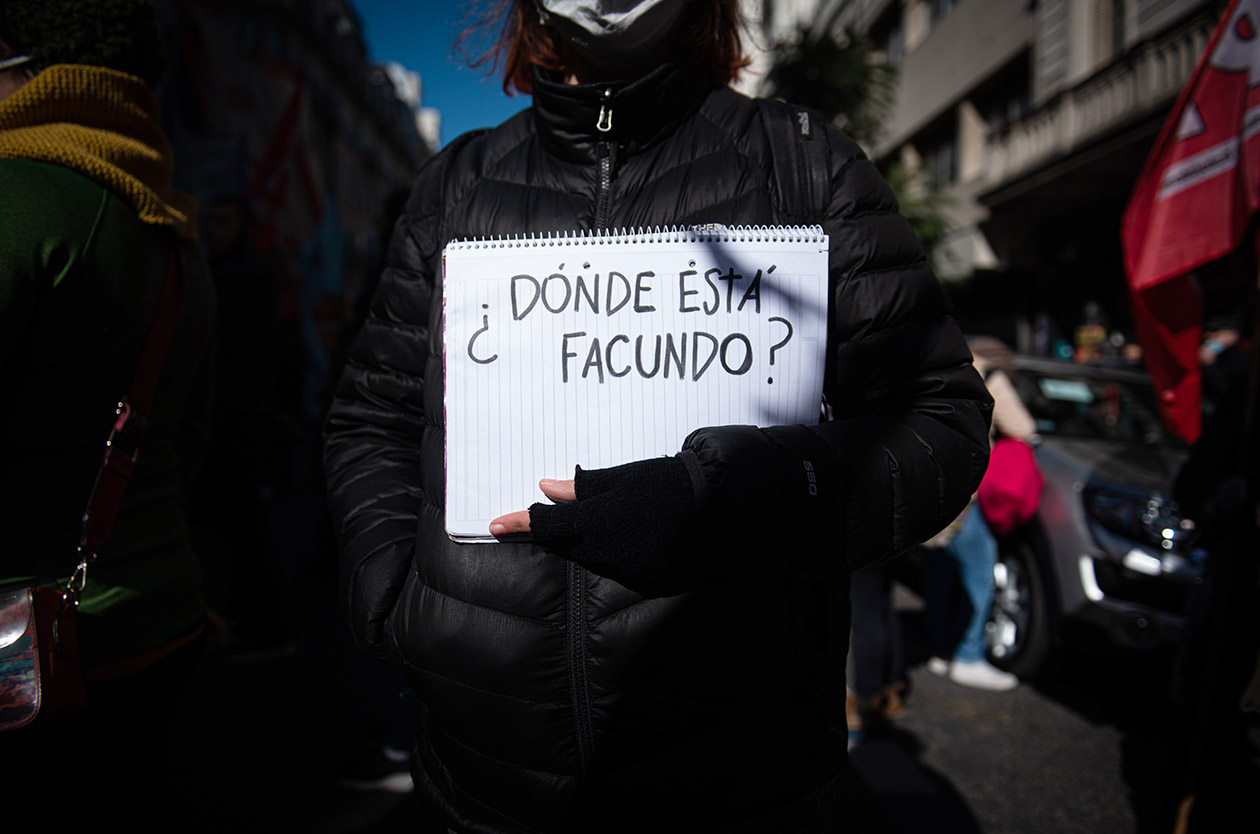 Un mes después, recién en la primera semana de julio, la desaparición de Facundo se convirtió en un tema nacional, llegó a los medios de comunicación porteños, algunas organizaciones comenzaron a empujar la visibilidad, y el macrismo escribió su tercer comunicado en cinco meses que denuncia una desaparición, para no perderse la oportunidad del cinismo –le precedieron uno por Luis Espinoza y otro por Fabián Gutiérrez. Supimos entonces que Facundo había sido parado dos veces por policías bonaerenses en el trayecto de la ruta 3 que une Pedro Luro con Bahía Blanca, porque caminaba por su vera durante el aislamiento obligatorio. Hoy, tres meses después de ese momento, Facundo no está.