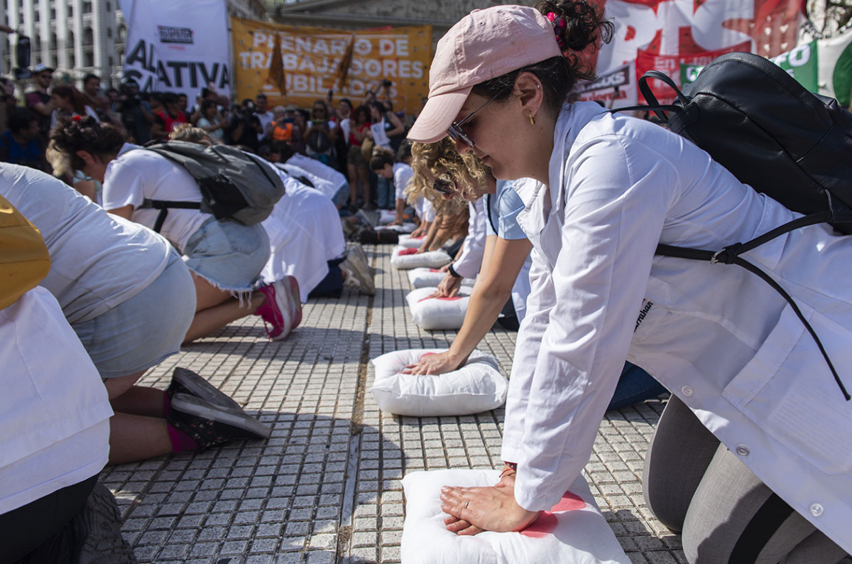 La conquista y la protección de derechos siempre requirió organización colectiva, jornadas de paro y de movilización extensas. En 2019, en la CABA, los residentes lograron que no avanzara la nueva Ley de Residentes y Concurrentes impulsada por el gobierno local dado que abría paso a la legalización de jornadas laborales de hasta 64 horas semanales, de lunes a lunes, y escondía el servicio de guardia bajo el eufemismo “formación intensiva continua”. Más tarde, en 2022, los paros pusieron el foco en la recomposición salarial. Fueron nueve semanas de lucha hasta llegar a un acuerdo paritario.