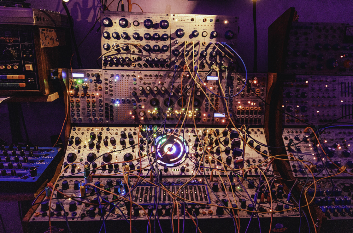 Klauss abre el concierto con un murmullo ominoso, un tono que parece surgir del subsuelo de Pompeya. En la planta baja de la imprenta Chilavert, entre tipográficas y rodillos detenidos, Ernesto Romeo, 57 años, programa ruidos en un muro de cables y perillas. Opera un sistema modular Moog, el primer sintetizador disponible para la venta, un mueble intuitivamente no transportable, marca distintiva de sus shows, compuesto de bloques que datan desde 1967 hasta 1978.