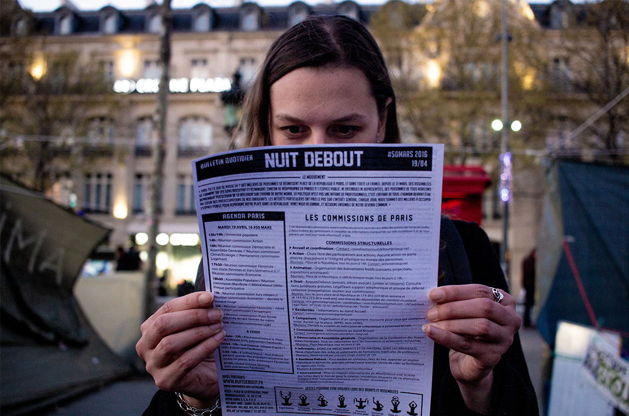 ¿Qué sucede cuando no existe síntesis? Francia parece tres islas que se alejan una de la otra. París es una de ellas, al igual que las grandes ciudades del país: cosmopolita, universitaria, con menor nivel de desocupación, alquileres muchas veces imposibles, fronteras sociales internas porosas y múltiples, cruces de idiomas, historias, culturas, músicas. Una de las expresiones de izquierda de ese mundo fue el movimiento “nuit debout” –noche de pie– en el año 2016, cuando la plaza de la République fue ocupada durante semanas, con asambleas, en un proceso nacido junto a las protestas contra la reforma a la ley del Trabajo que quiso imponer el entonces gobierno del Partido Socialista encabezado por Francois Hollande.