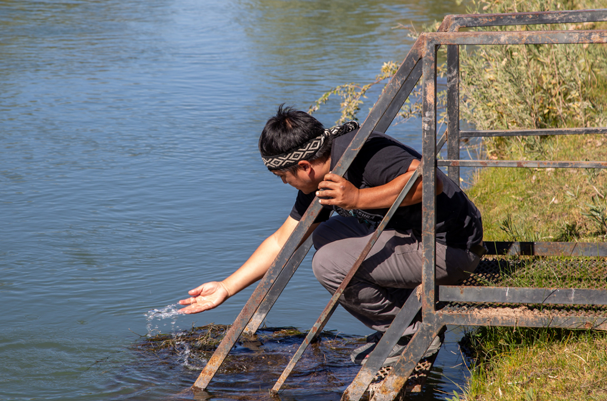 El joven dirigente mapuche vino acompañado de su padre Jorge Nahuel, lonko de larga trayectoria en la Confe, quien ofició de chofer y no probó una gota de alcohol. El primer tema de conversación fue el conflicto del momento: la paralización de una perforación iniciada por YPF en territorio de la comunidad Kaxipayiñ. Horas antes visitamos ese paraje, lindero con el lago artificial Mari Menuco. Un kona nos mostró los trabajos realizados por la empresa estatal sin que la comunidad siquiera se enterara, hasta que lograron percatarse y expulsaron a los operarios. Lo que exigen es que se aplique el proceso constitucional de la consulta. En declaraciones posteriores el gobierno provincial dijo que tendría en cuenta ese reclamo. “Sería un importantísimo paso adelante para nosotros”, afirma Lef.