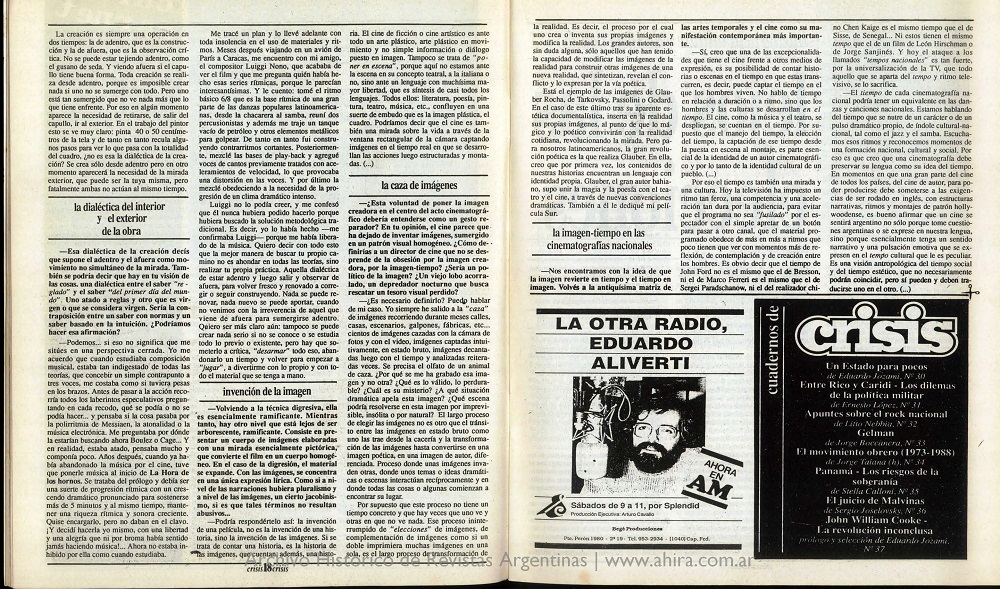 Pino Solanas murió el 7 de noviembre pasado. Tenía 84 años y una trayectoria que dejó huella en política y en el cine. En marzo de 1989, la revista crisis publicó un fragmento de un diálogo que tuvo con Horacio González, que luego se plasmó en el libro Mirada. Reflexiones sobre cine a propósito de Sur, en el que pueden conocerse sus secretos a la hora de filmar, de pensar las escenas y de entender la industria. Una charla en la que puede disfrutarse del Solanas artista y sus lúcidas reflexiones sobre el proceso creativo.