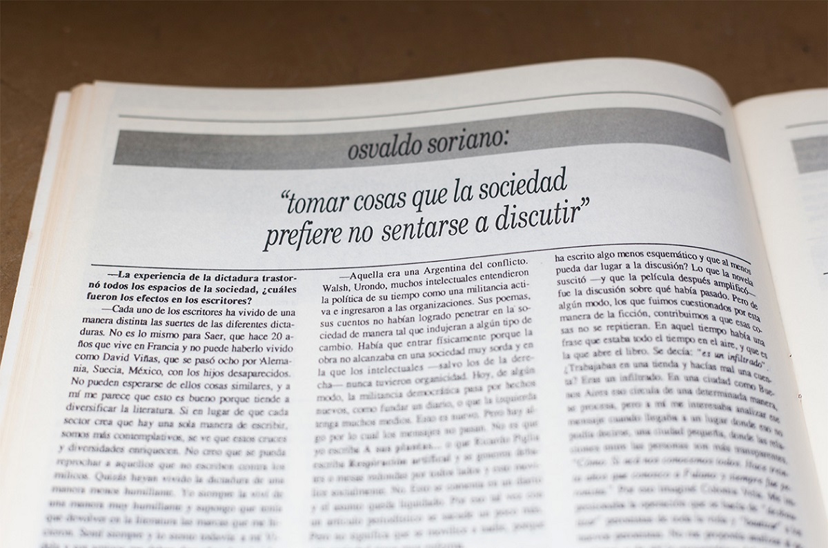 -Cada uno de los escritores ha vivido de una manera distinta las suertes de las diferentes dictaduras. No es lo mismo para Saer, que hace 20 años que vive en Francia y no puede haberlo vivido como David Viñas, que se pasó ocho por Alemania, Suecia, México, con los hijos desaparecidos. No pueden esperarse de ellos cosas similares, y a mí me parece que esto es bueno porque tiende a diversificar la literatura. Si en lugar de que cada sector crea que hay una sola manera de escribir, más contemplativo, se ve que estos cruces y diversidades enriquecen. No creo que se pueda reprochar a aquellos que no escriben contra los milicos. Quizás hayan vivido la dictadura de una manera menos humillante. Yo siempre la viví de una manera muy humillante y supongo que tenía que devolver en la literatura las marcas que me hicieron. Sentí siempre y lo siento todavía: a mí Videla y sus amigos me deben diez años de mi vida, como a tanta otra gente. La mía es una literatura de vivencias personales, y cuando vuelvo al interior, a la memoria, tropiezo con milicos y milicos. Con opresiones y censuras. Sobre todo la interdicción, la idea de «rojo» que no tiene cabida en la sociedad.