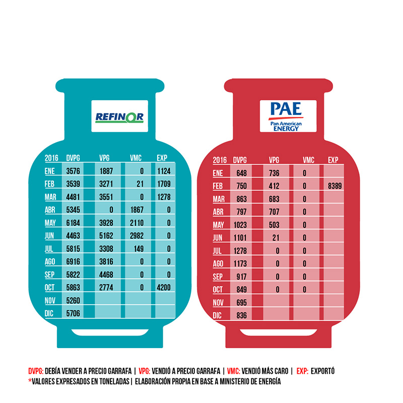 La petrolera Refinor, que adujo no disponer de gas para garrafas debido a que el fluido importado de Bolivia tenía “bajo contenido de líquidos”, sí tuvo GLP para las empresas que se lo compraban al precio de exportación, más alto que el valor al que debía venderles a las fraccionadoras. PAE, en cambio, dejó de vender con el argumento de que se retiraba del mercado de GLP. Sus voceros dijeron a Crisis que “fue una decisión de la compañía abandonar ese mercado y destinar el gas a otros más rentables”. Hasta ahora, sin embargo, la firma sigue inscripta en el registro de proveedores y sujeta a sus obligaciones.