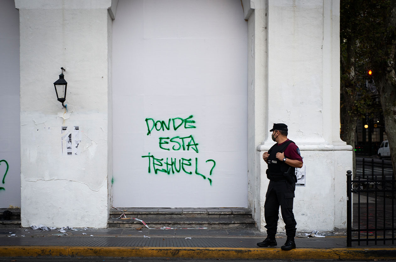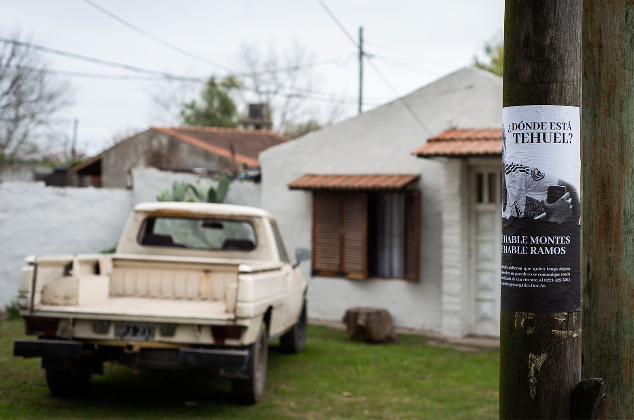 No es fácil encontrar las huellas de Tehuel De La Torre en sus territorios. Su presencia se esfuma entre la vida nómade que le tocó, las raíces esquivas de sus trabajos informales, el silencio de algunas instituciones de las que formó parte. Mientras tanto, el Estado ofrece recompensas y rastrillajes, y las estaciones se llenan de llenan de sonrisas de Tehuel en blanco y negro e informan que tenía puesta una camisa manga corta color blanco, un pantalón gris y una visera del mismo color con detalles negros y zapatillas azules como si se tratara de cosas inconfundibles, inseparables, y una campera que ya no se busca.