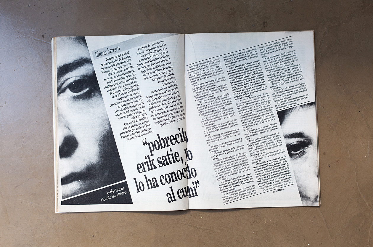 Es verano de 1989 y Liliana Herrero es un viento que alborota la escena musical con una impertinente pasión que cruza la raíz con lo contemporáneo, sacándoles el óxido a los géneros. Una tromba de respuestas filosas que en esta entrevista publicada en la crisis #67, deja en claro que interpretar puede ser otra de las bellas artes y explica por qué “la técnica te permite optar entre ser robot vos mismo o transformarte en aprendiz de brujo”.