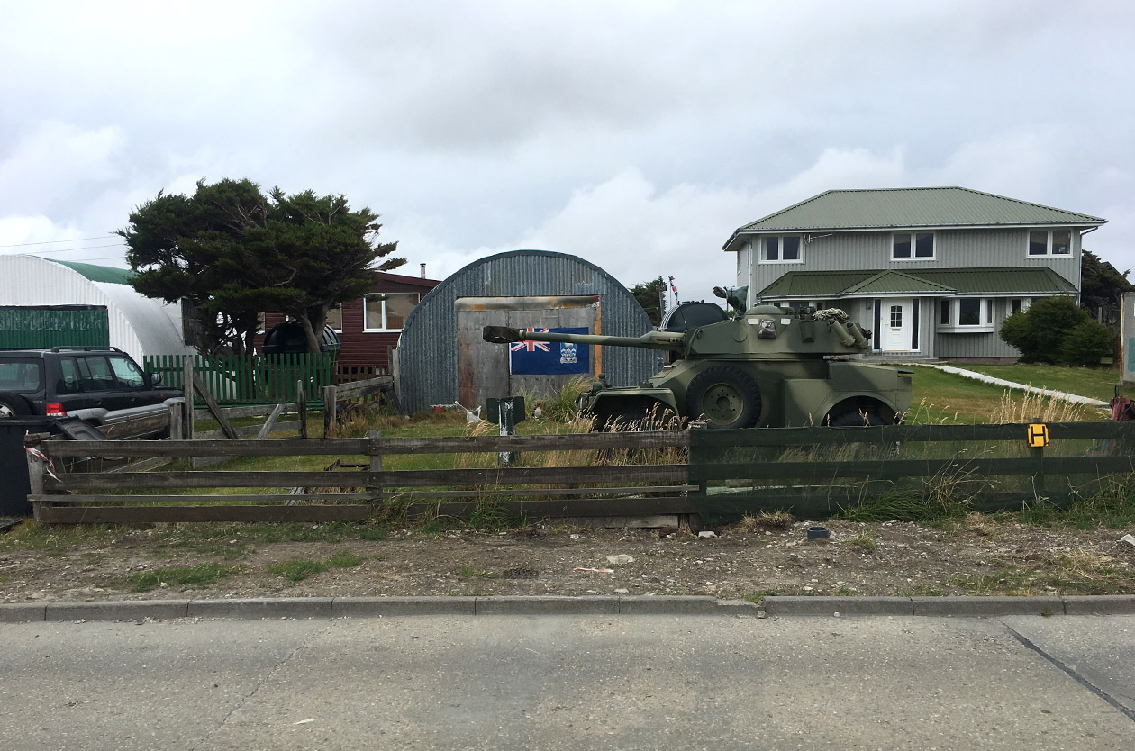 Los vuelos que llegan desde fuera de las islas aterrizan todos en Mount Pleasant, a unos 50 kilómetros de Stanley, la base militar construida luego de 1982. Allí se estima que hay entre 1000 y 1500 soldados (el dato real no lo saben ni siquiera los isleños). Por la ruta —también construida luego de 1982, vacía, impecable— se llega a Stanley, la única «ciudad» de las islas (va entre comillas porque son menos de 2000 habitantes, más o menos la misma cantidad que en El Chaltén, la urbe menos habitada de Santa Cruz, la provincia menos densamente poblada del país). Le decimos Stanley porque así se la conoció en todos nuestros mapas previos a 1982: recién el 10 de abril de ese año, y luego de algunas discusiones internas que bautizaron provisoriamente como «Puerto Rivero» a la ciudad, Stanley pasó a llamarse «Puerto Argentino»: una extrañeza, ya que la ciudad fue fundada por británicos en 1845, doce años después del ataque de la corbeta británica a Puerto Soledad —antes, «Puerto Luis», hoy «Port Louis», actualmente finca privada. Conocer las islas es también librarse de viejos pruritos y aprender su historia, sus nombres, como el de «Falklands», que tan mala prensa tiene y que no es ni más ni menos que el nombre que se le da en inglés desde siempre a las «Islas Malvinas» (por cierto, los isleños también tienen mucho por trabajar: a este término ellos lo llaman «The M Word» —»la palabra con ‘M'»—, como si estuviesen hablando de Voldemort).