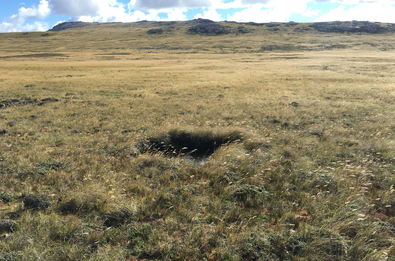 Desde Mount Pleasant (o Monte Placentero, si de nombres y traducciones hablamos) hasta Stanley se ve lo mismo que en todo el resto de las islas: pastos largos más verdes o más amarillos según la época sobre una tierra negra que luego el visitante sabrá que es turba (un combustible que luce como barro pero que no ensucia, y que se encuentra en muy pocos lugares del mundo), colinas suaves, algunas rocas puntiagudas y varios fragmentos de un mar azul, que se obstina en figurar en casi todos los recovecos de las islas (esto sí está muy bien representado en los mapas, y lo sufren los niños que calcan y los tatuadores que empastan brazos y espaldas con tinta). Cada tanto el paisaje natural es interrumpido por un rebaño de ovejas o un conjunto de vacas. Más infrecuente aún —pero sucede—, al paisaje le brotan una, dos o hasta tres casas, con algunos galpones o hangares: es lo que se conoce en las islas como «camp», palabra heredada del «campo» de los gauchos en vez del «countryside» british.