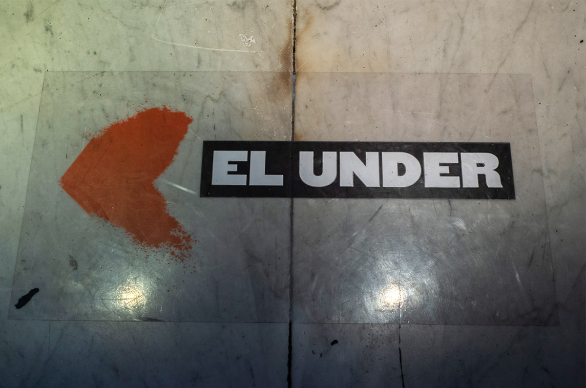 Seguimos las flechas que dicen “Under” y en el descanso de la escalera aparece una gigantografía con el frente del Parakultural. La puerta de metal, las rejas, Lisa, la peruana, como le decían, que era la encargada de vender las entradas, todo se ve tal cual, también el cartel que decía: “Hoy Omar Viola presenta a: Diego Biondo, Miguel Fernández Alonso, Olea Nacy, Olkar Ramírez, Alberto Sanfuentes y Luis Aranoski. Y tal vez la presencia de Frankenstein”. Cuando se ve, pega una carcajada aguda de emoción, al fin se le va la mufa. “Sacame una foto” es lo primero que dice cuando ve su nombre. Se tira al piso y cruza las piernas mientras la gente le pasa por al lado. No se apura en levantarse y seguir recorriendo, más bien se lo ve cómodo, como si estuviera en el lugar original.