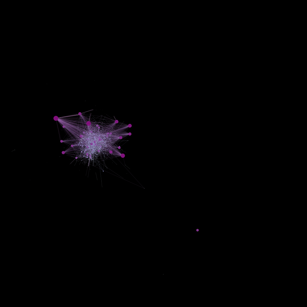 Limpio de todo ruido en el Gráfico 3 podemos ver solo las cuentas pasajeras sin que estén tapadas por las demás, y se ve bastante clara la cohesión en especial entre las cuentas que recibieron menos interacciones (más chicas y más claras en el gráfico).