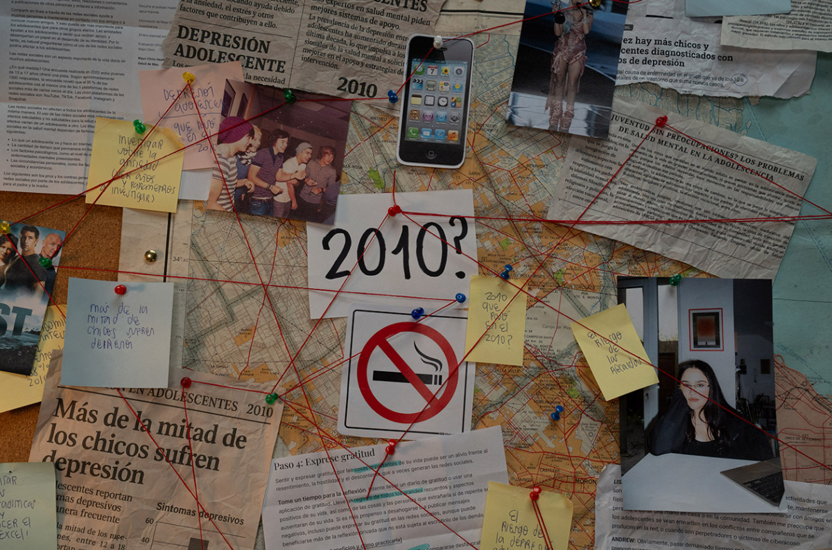“Cualquier parecido con la realidad no es coincidencia, es el propósito”, se advierte desde el principio. Se muestran jóvenes que usan el celular en vez de hablarse, que rezan para que no se les acabe la batería en el taxi y que se acuestan a dormir idiotizados por los videos de TikTok: las “ratas de laboratorio” del like. El documental apuesta por una estética de la investigación. La protagonista viste guantes, se sienta en un escritorio rodeado de cajas y bucea en mapas y papeles para explicar qué le pasa a su generación. “Somos todos drogadictos”, dice Ofelia con calma. La hipótesis del ensayo, que se desarrollará a lo largo de la pieza con tono didáctico, consiste en que las redes sociales y el celular conforman un “vicio nuevo, raro, normal y universal”, como el cigarrillo a mediados del siglo XX.