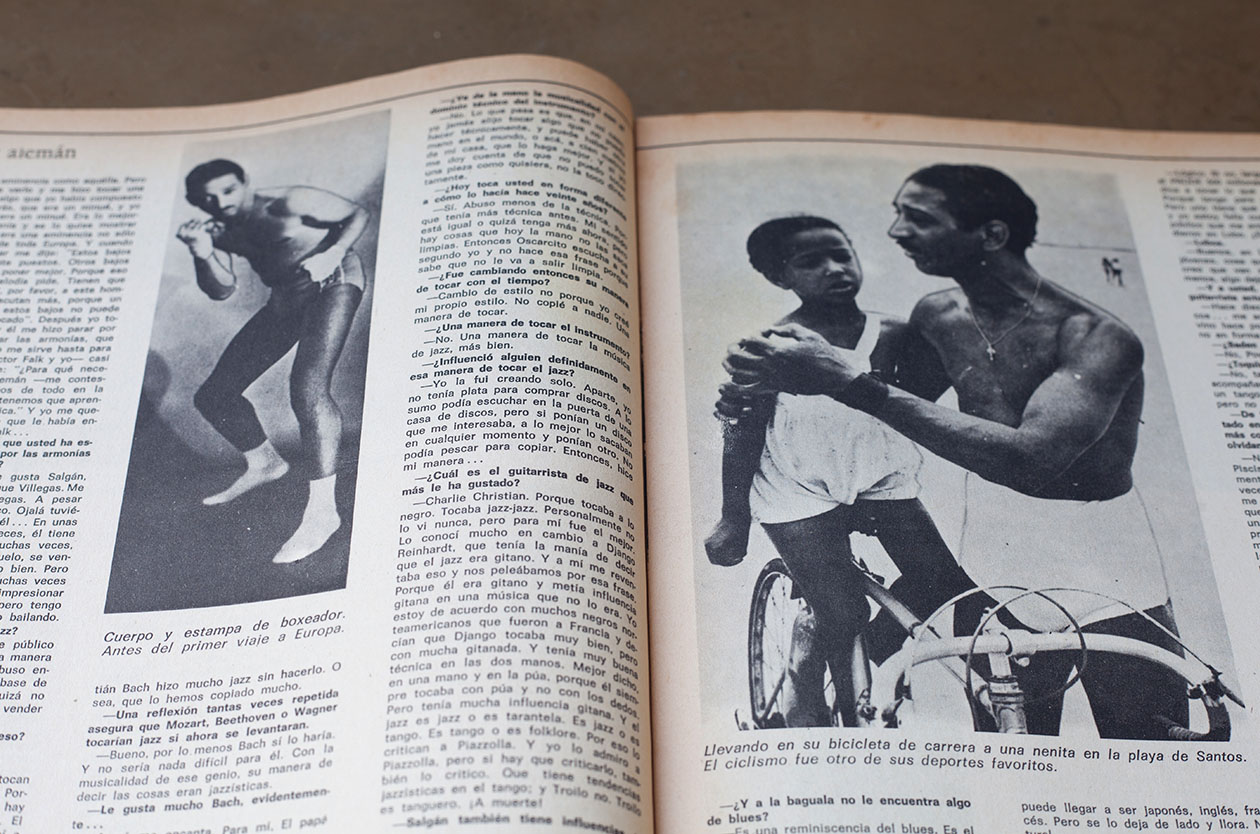 -Sí… a esta mujer debía haberla conocido diez años antes. Si yo la conozco diez años antes, pues ahora sería un hombre con tres casas de departamentos propias, porque yo tengo un agujerito en cada mano y en el bolsillo también. Cuando gané mucha plata, siempre tuve a mi lado amigos que la tiraban… y yo también la tiraba. Pensaba que eso iba a durar toda la vida y no dura siempre. Hay que aprenderlo… pero tuve una infancia muy difícil. Durmiendo bajo los bancos de plaza en Brasil, abriendo puertas de automóviles, llevando changuitos a la feria, hasta juntar la plata para comprar mi primer instrumento…