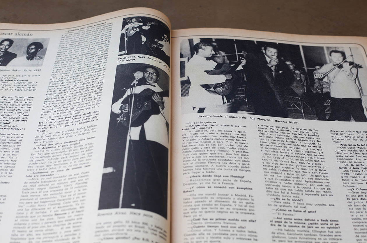 -Ella me mandó buscar a Madrid. Estaba formando su orquesta y alguien le había pasado el chimento de un guitarrista que estaba en España. Y fui el único negro que tenía en su orquesta porque ella no quería negros en la orquesta. Pero yo sí.