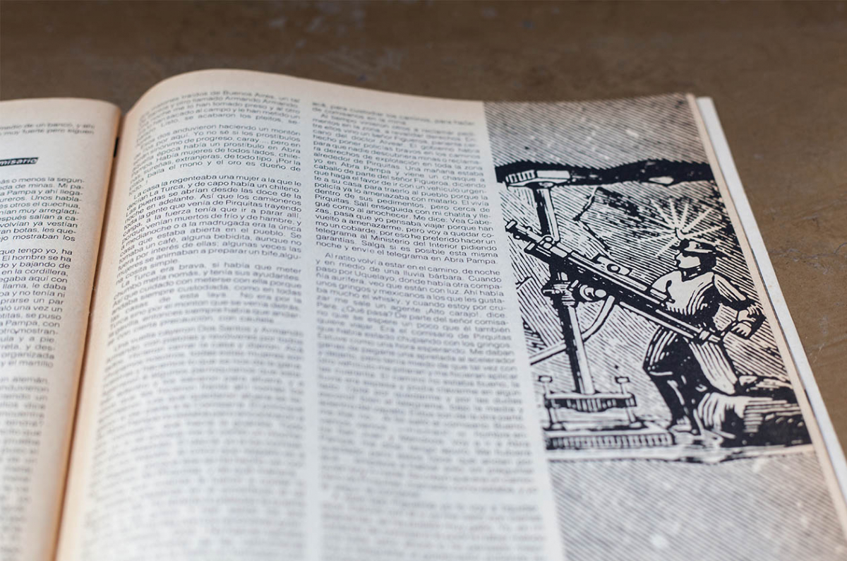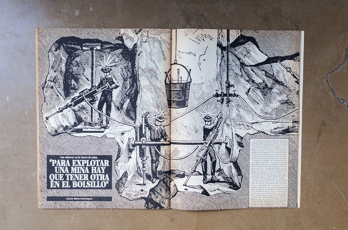 Carlos María Dominguez, periodista que fue parte de las dos primeras épocas de revista crisis, viaja en 1986 a la provincia de Jujuy y escribe una crónica sobre la actividad minera en esa provincia, en manos de multinacionales extranjeras o monopolios nacionales, que mantienen una celosa custodia perimetral de la riqueza y restringen la libre circulación. Los mineros son reticentes a hablar por eventuales represalias pero él consigue hablar con uno de ellos. Noticias de ayer que, al calor de lo que sucede hoy en el norte, suenan al diario de mañana.