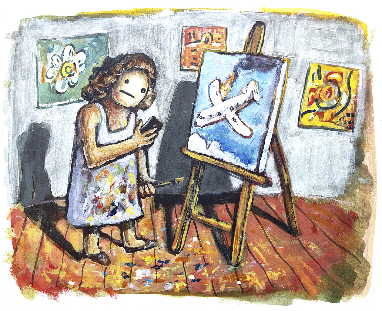 Esos primeros meses hasta que puede alquilar algo ella sola vive en lo de su hermana, que también vive allá. Recién entonces se le suma el Chango. El Chango hasta ese momento no habla una palabra de alemán ni había estado nunca en ese país. El primer trabajo que consigue es de peón en una empresa de mudanzas, trabajo para el cual no es imprescindible hablar el alemán. Sandra, por su parte, deja Zara, comienza a trabajar en un jardín de infantes, y se casa con el Chango allá mismo, para que él se pueda quedar a vivir, y trabajar. En los casi quince años que vivieron en Alemania el Chango fue cambiando de ocupaciones, trabajó en un vivero, dando clases particulares de música, haciendo algún trabajo como músico también, ocasionalmente, y en el mantenimiento de veleros, trabajo que lo iría a matar. Sandra hace una formación pedagógica y empieza a trabajar como terapeuta artística en distintas instituciones, y nunca deja de pintar. Son años buenos para ellos, esos, los primeros. En algún momento ella queda embarazada de Joaquín y dos años más tarde, de Román. Dice que para cuando queda embarazada de Román, el Chango y ella ya están mal. Que tal vez por eso el Chango nunca le presta demasiada atención a su segundo hijo, y se dedica solo al primogénito. Y ni siquiera tanto. A partir de entonces ya todo es guerra.
