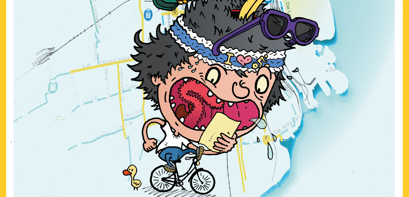 No importa, pienso, si al final de alguna ciclovía mal trazada caigo a un pozo sin fin, me atajarían los elefantes o tortugas gigantes que sostienen la ciudad. Además, hay un aliciente grande: “En todo estás vos”, reza el corolario último del pensadísimo objeto de propaganda que atesora este mapa desactualizado. Y uno, en definitiva, se adapta a todo. Es una gran cosa “estar en todo”. La ciudad, de golpe, te convierte en Dios. Tanto que me animo a decir, mientras empiezo a pedalear por Libertador con rumbo al Norte, cambio de bicicleta en el Regimiento de Patricios y me lanzo rumbo al vacío existencial de Nuñez, la zona más rápida de la ciudad, que esto que ahora está en mí, y que voy a contar, empieza ya en otras partes.