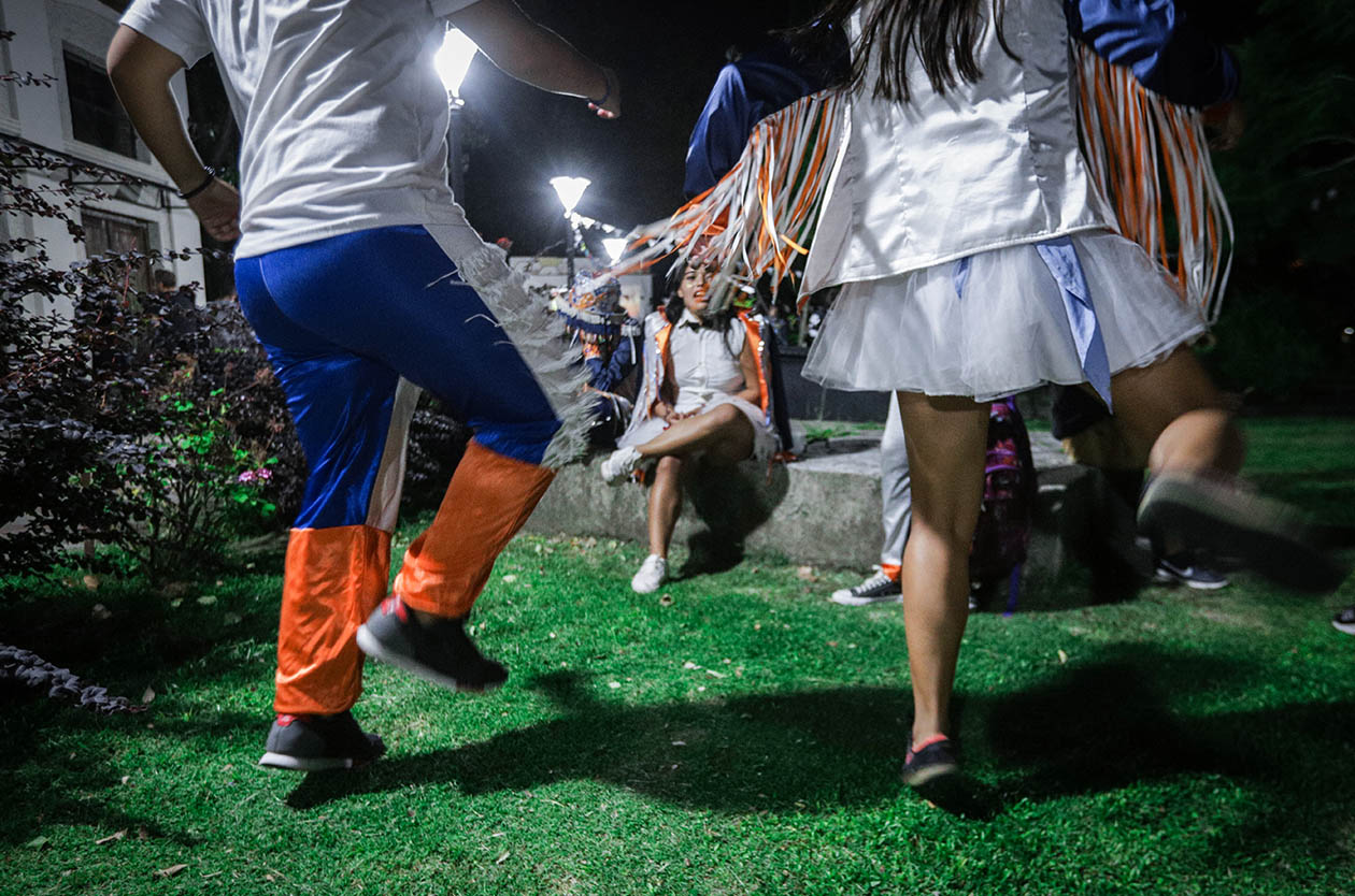 Se está atento a las mutaciones porque se cree que lo que viene va a ser mejor: estar muy metidos en las fuerzas del presente y en los nervios que las recorren, que contienen información para ampliar la imaginación política y evitar caer en un tango. Los mandamientos implícitos podrían ser: que no se corten las fugas gedientas que sostienen las vidas de carnaval; que no se pierda y se pueda recuperar el mejor legado de la vieja escuela; y, sobre todo, que se puedan dar las disputas más o menos silenciosas, más o menos cuidadosas, con otros realismos vecinales que tienen la capacidad de bloquear esas mutaciones. Porque los vueltitos de esas bajadas de línea siempre están al acecho: “Una vez estábamos haciendo una jornada de difusión del carnaval en la plaza en donde ensayamos –recuerda Martín–, que compartimos con los evangelistas porque ellos ahí montan su escenario. Nosotros para no pudrirla nos alejamos unos metros, yo estaba meta agitar haciendo difusión, hablando de todo, invitando a las familias. En eso veo que me dejan una carta en el piso; cuando termino de hablar la abro y leo: ‘Les decimos con mucho respeto que lo que hacen es una fiesta del diablo y que Lucifer los va a encontrar a todos cuando se vayan al infierno’”.