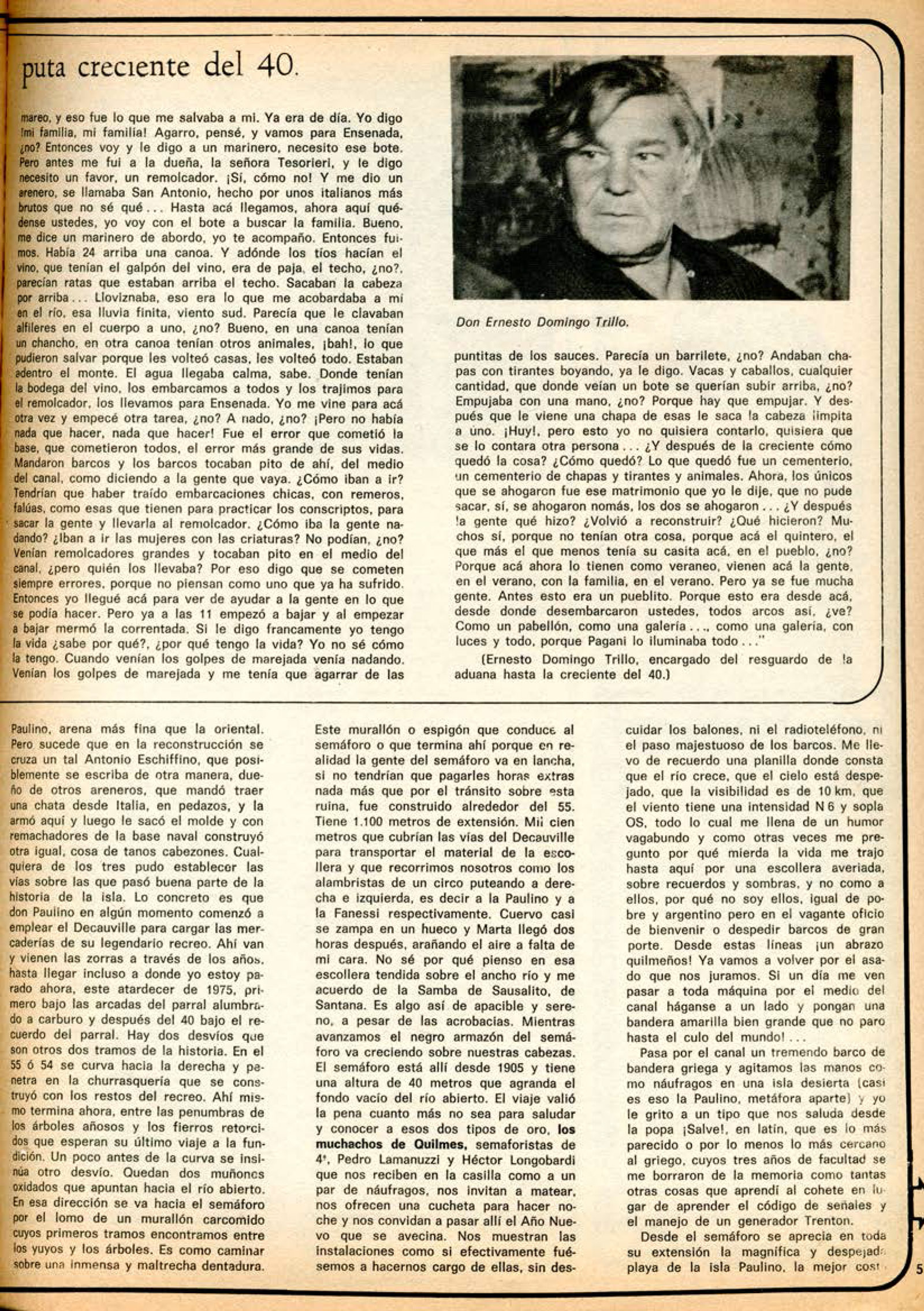 (Ernesto Domingo Trillo, encargado del resguardo de la aduana hasta la creciente del 40.)