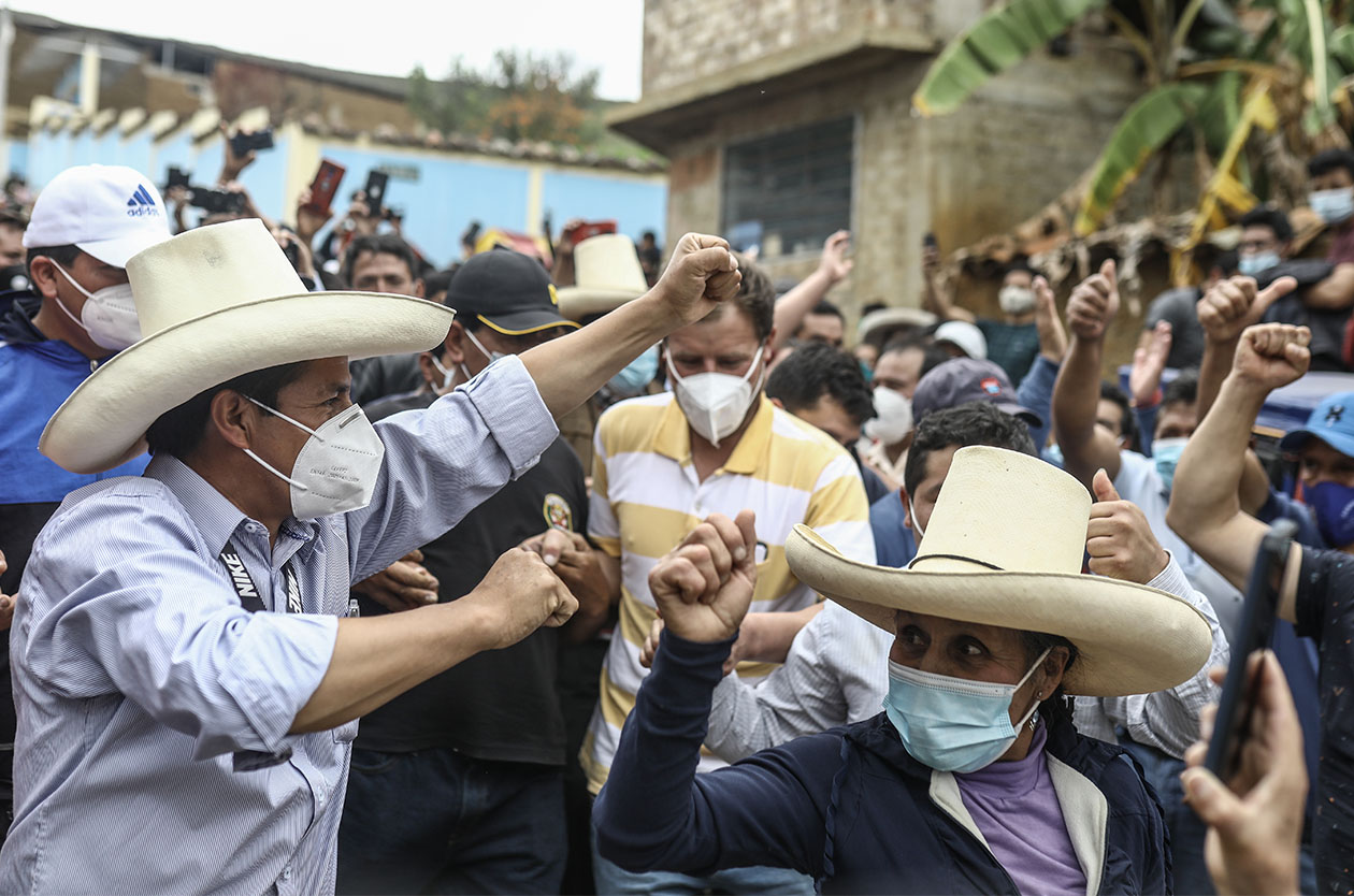 La figura de Pedro Castillo irrumpió por ese mismo flanco izquierdo casi al final de la campaña, en un territorio que había votado en 2016 por Verónika Mendoza (y antes por Ollanta Humala). En el origen de su perfil como personaje político están las rondas campesinas de Cajamarca, organización popular que construyó formas de autogobierno e impidió en esa y otras regiones el avance de Sendero Luminoso, siendo un factor clave para su derrota.