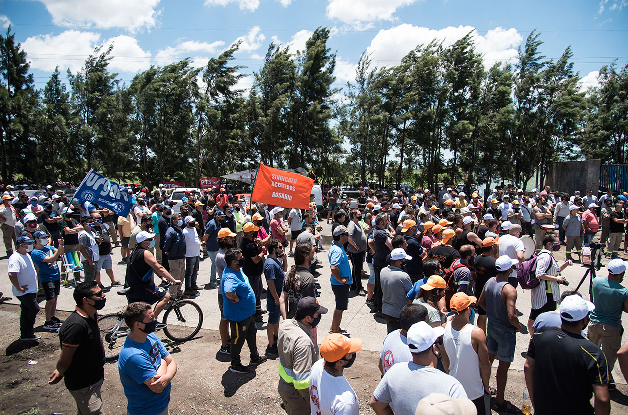 La medida de fuerza resulta contundente porque por primera vez reúne a los tres sindicatos del sector. La Federación de Aceiteros y el Sindicato de San Lorenzo (SOEA) hicieron a un lado sus históricas diferencias, para confluir con los recibidores de granos de URGARA. Del otro lado están los principales grupos económicos, que son en su mayoría trasnacionales: las estadounidenses Cargill, Bunge y ADM; la francesa Dreyfus; la suiza Glencore; la china COFCO; y las argentinas Molinos Río de La Plata y Aceitera General Deheza (AGD). Estas empresas se agrupan en la Cámara de la Industria Aceitera (CIARA), entidad con notable poder de lobby.