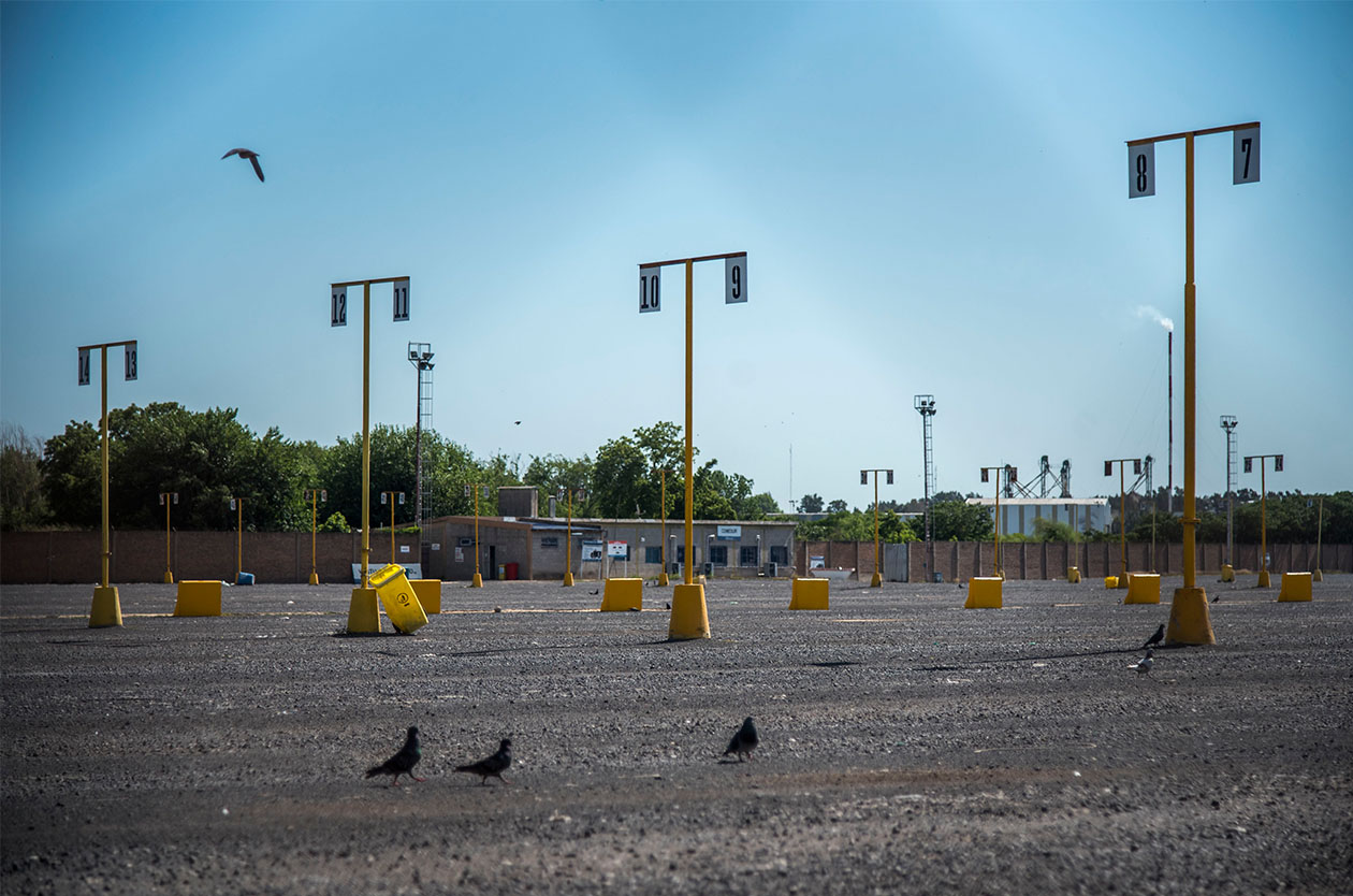 Cuarenta minutos en auto separan a Dreyfus de la Terminal 6 (T6), en Puerto San Martín, al norte de Rosario. La planta forma parte del cordón de San Lorenzo, el complejo agroindustrial exportador más importante de América Latina. Tiene como accionistas a AGD y Bunge, capacidad para recibir 80 mil toneladas diarias de granos y puede procesar más de 20 mil toneladas cada veinticuatro horas. Lo que entra por una punta sale convertido en aceite, harina o pellets de cáscara. También puede volverse biodiesel o glicerina refinada. Pero ahora está todo parado. No se mueve nada adentro.