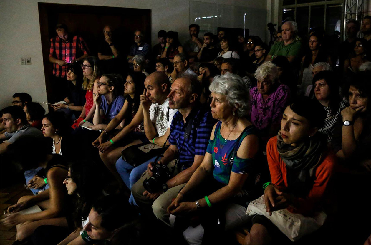Termina la función. Afuera, el sol tremendo empieza a apagarse. Hay una charla entre artistas y público. Varios dicen que esta “Visita” es un antes y un después, podría ser por el perpetrador que lloró, porque nos reímos dentro de un campo de concentración, por los viajes en el tiempo. Anochece. Salgo de la Exma y pienso en E.G, aunque en ese momento no sé su nombre. Solo sé de él lo que declaró en la audiencia del juicio ESMA que F.B presenció y que hoy un grupo de personas conformado al azar repitió. E.G tenía 23 años cuando estuvo en la ESMA. Un día fue liberado, salió caminando y detuvo un colectivo, un 107, no tenía dinero para pagar el boleto. En Cuarto Intermedio su testimonio se corporizó en un muchacho que seguramente no sabía lo que iba a tener que leer. En cada función E.G tuvo un cuerpo diferente, una voz distinta, un tono, un ritmo, un titubeo. Pienso en preguntarle a M.Z cuántos de esos bucles ocurrieron, cuántas vetas ya rodean la médula, pero mejor no, la imprecisión también dice algo. Me subo a un taxi. En el camino hacia mi casa, el alumbrado público ya encendido, miro los mensajes de WhatsApp que se acumularon durante las horas que estuve en la Exma. P.L me reenvió un mensaje de D.M que está en Bolivia, investigando cómo está la gente después del golpe. Dice: “Mucha orfandad, poca cobertura, demasiada angustia en la gestión de lo cotidiano”. Pienso si habrá juicios en Bolivia alguna vez, si lo registrarán todo, si alguien pensará que vale la pena leerlo, si alguien deseará actuarlo una y otra vez, con gracia, con un temblor en la voz, con la piel un poco enrojecida, con un pliegue capaz de trastocar el lazo que tenemos con los muertos, y con los vivos. Pienso que tal vez sí, o no, tal vez pasen otras cosas, imprevistas, como las del día que se terminó.